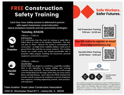 GLCA, our Safety Committee, and our Board of Directors sincerely appreciates the opportunity to work with the Construction Safety Council to provide this free safety training opportunity.